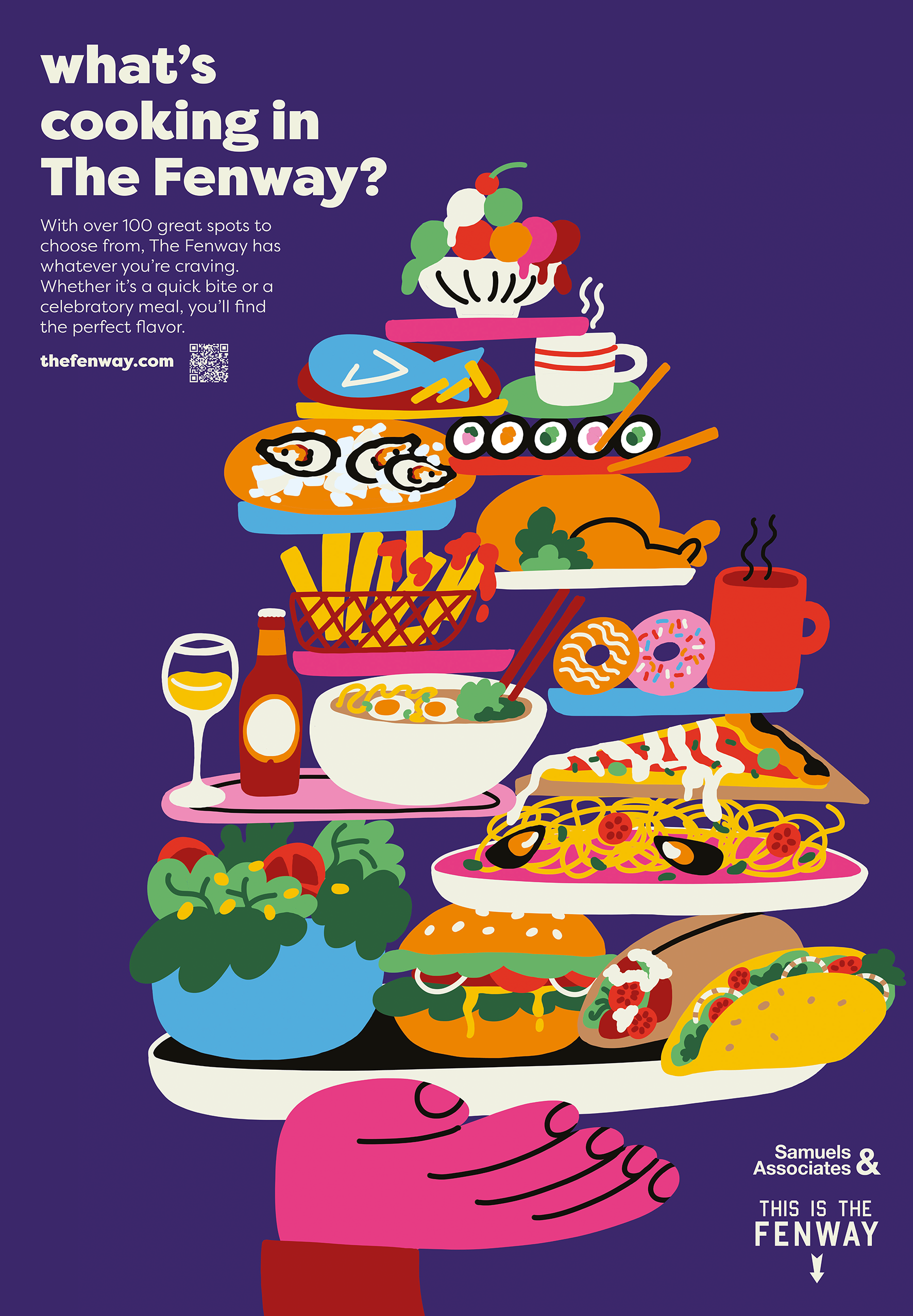 With a nod to the Red Sox (play ball), the many music venues (play it loud) and the recreation spaces (play ground) our campaign ties together all the ways to enjoy The Fenway. A custom typeface, bold colors, and illustrations by Cachetejack convey the fun, vibrancy, and variety of activities found in the neighborhood. Look for the campaign popping up around the neighborhood —everywhere from bus shelters to social media—inviting all to enjoy The Fenway.